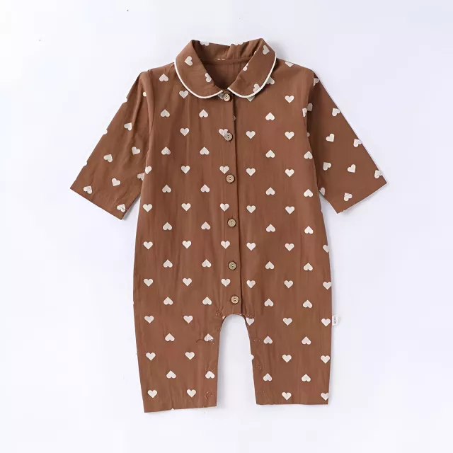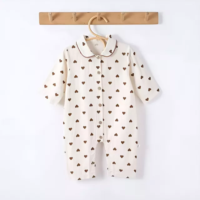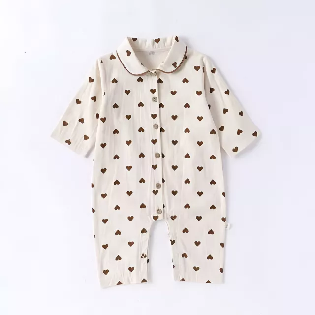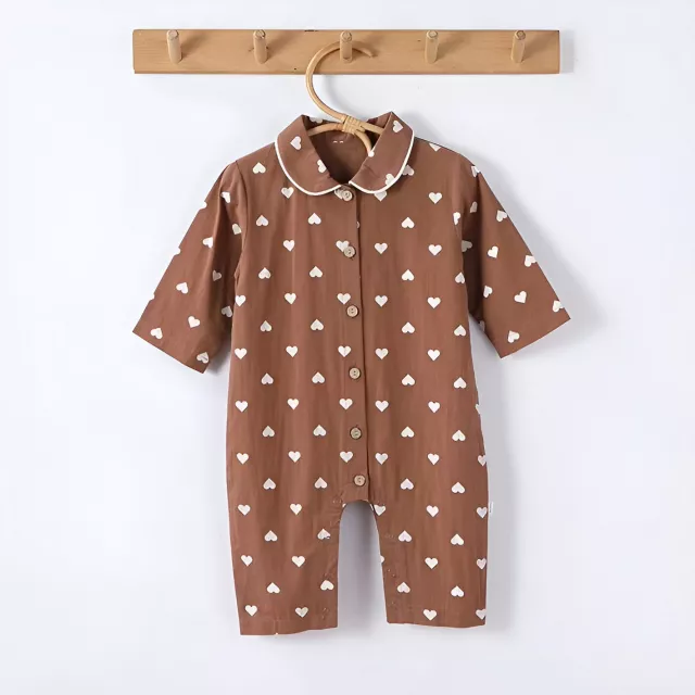 Whether it’s tummy time, a stroll in the park, or just a cozy day at home, this romper is made to keep your baby comfy and cute. Its versatile design makes it ideal for newborn photoshoots, baby showers, or everyday wear. The neutral, heart-themed print adds a sweet charm that suits any season and every setting.