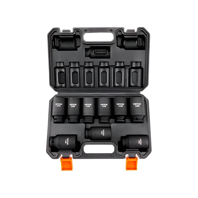 The 1/2″ Drive Impact Socket Set stands out for its ability to withstand heavy-duty use while providing precise and efficient performance. Each socket is made with high-strength alloy steel, ensuring it can handle even the toughest jobs. The hexagonal design helps prevent damage to bolts, while the large size markings make identifying the right socket simple and quick.
