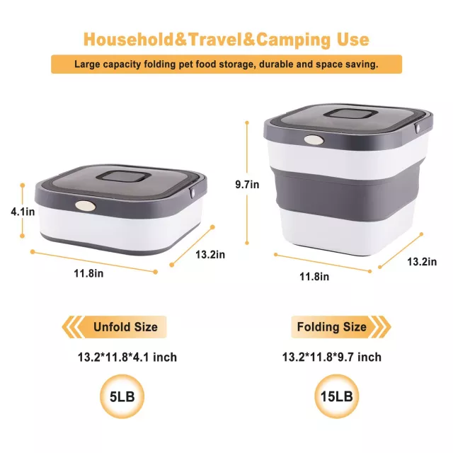 This 13L Large Capacity Pet Food Storage Container is the perfect solution for pet owners who need reliable and efficient food storage. Its sealed design helps protect against humidity, dust, and pests, while its foldable nature offers an easy and space-saving way to keep your pet’s food fresh. Whether at home or traveling, this pet food storage container is versatile and ready to keep your pet’s food in top condition.
