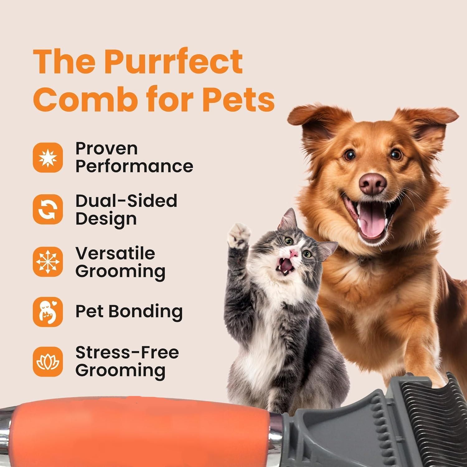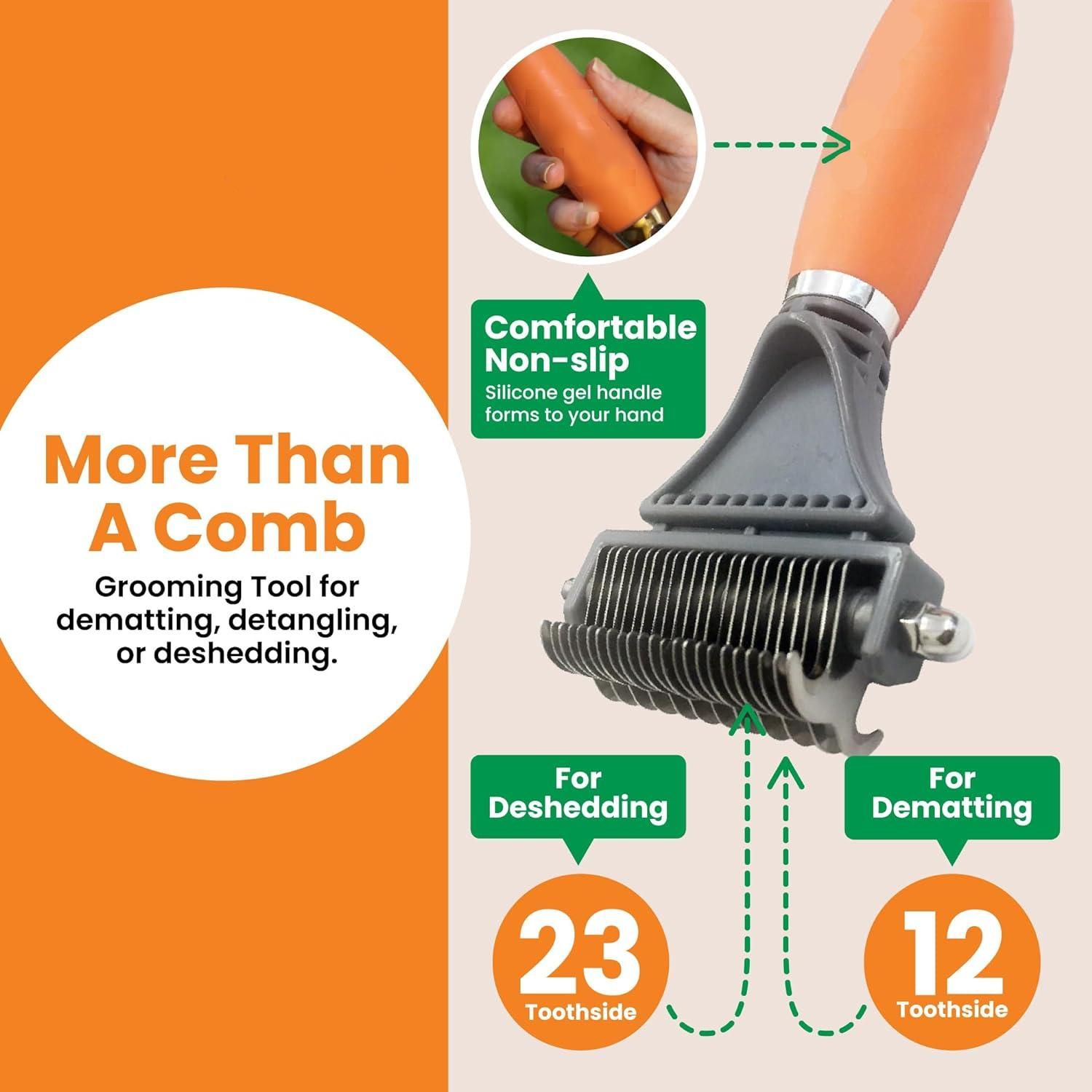Introducing our 2-in-1 Dematting & Grooming Comb for Pets – a revolutionary tool designed for pet owners who value both efficiency and comfort in pet grooming. Boasting over 19,000 satisfied users, this comb ensures your furry friend looks professionally groomed in just minutes. Transform your pet grooming routine with ease and experience the joy of a well-groomed pet every day.