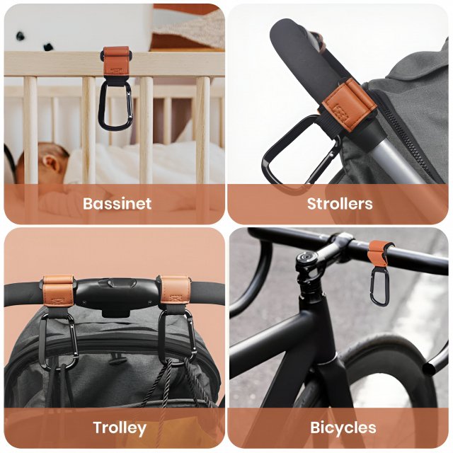As a parent, juggling multiple bags, toys, and essentials while on the go can be overwhelming. Simplify your life with the 360° Rotatable Baby Stroller Hooks, designed to keep your hands free and your stroller organized. These sleek, high-quality hooks are made from durable PU leather and feature a robust aluminum alloy carabiner that easily attaches to any pram, stroller, or shopping cart. Whether you’re out on a stroll, grocery shopping, or running errands, these stroller hooks are your perfect companion.