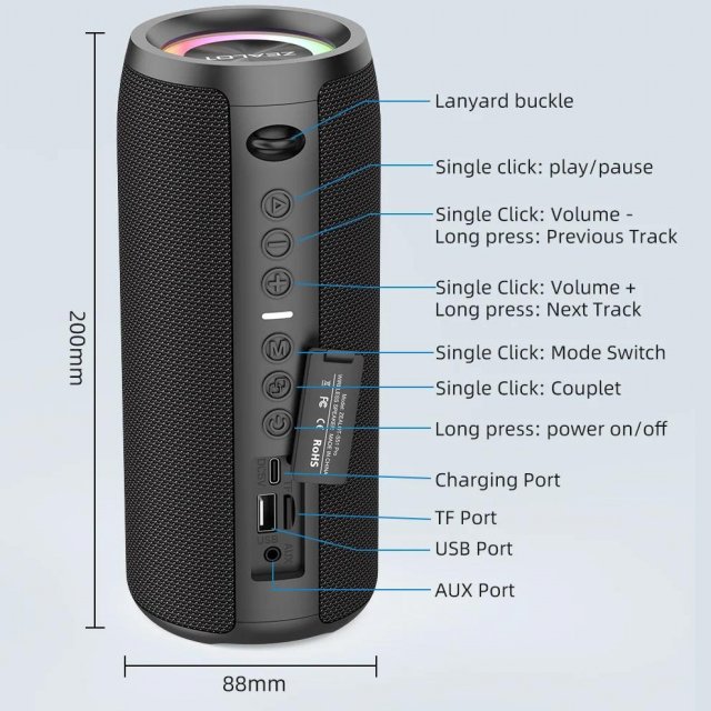 Don’t let the weather or your location dictate when and where you can enjoy music. This speaker is designed for versatility. The advanced Bluetooth 5.2 connectivity ensures a stable, interference-free connection within a 33-foot range, making it easy to pair with smartphones, tablets, or laptops. Additionally, it supports offline music playback via TF cards, giving you more flexibility when you’re on the go. Whether you’re hiking, camping, or simply lounging by the pool, you’ll enjoy uninterrupted audio with exceptional sound quality.