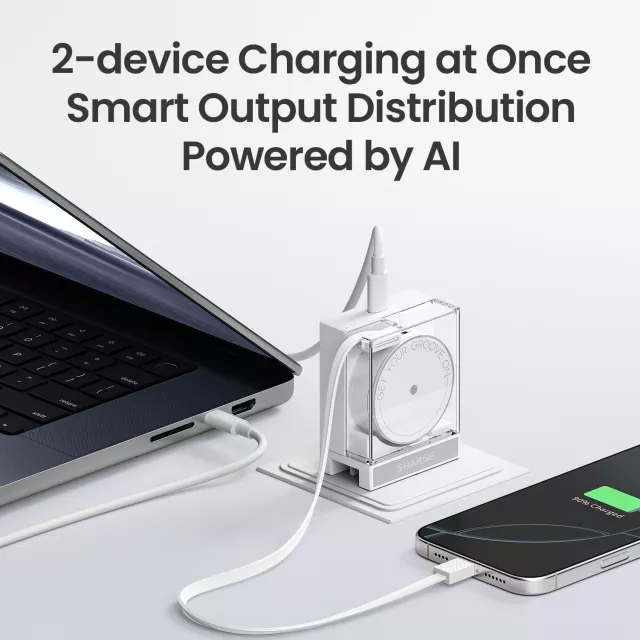 Charge your devices faster and more efficiently. With 65W PD fast charging, you can power up your MacBook Air to 50% in just 35 minutes, making it 45% faster than standard 35W chargers. Need to charge multiple devices? No problem. With a USB-C cable and an extra USB-C port, you can charge two devices simultaneously without compromising speed.