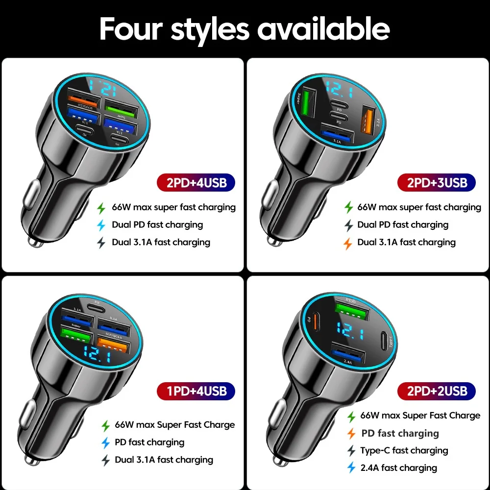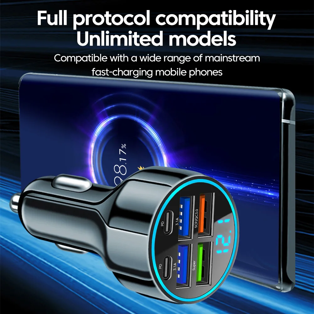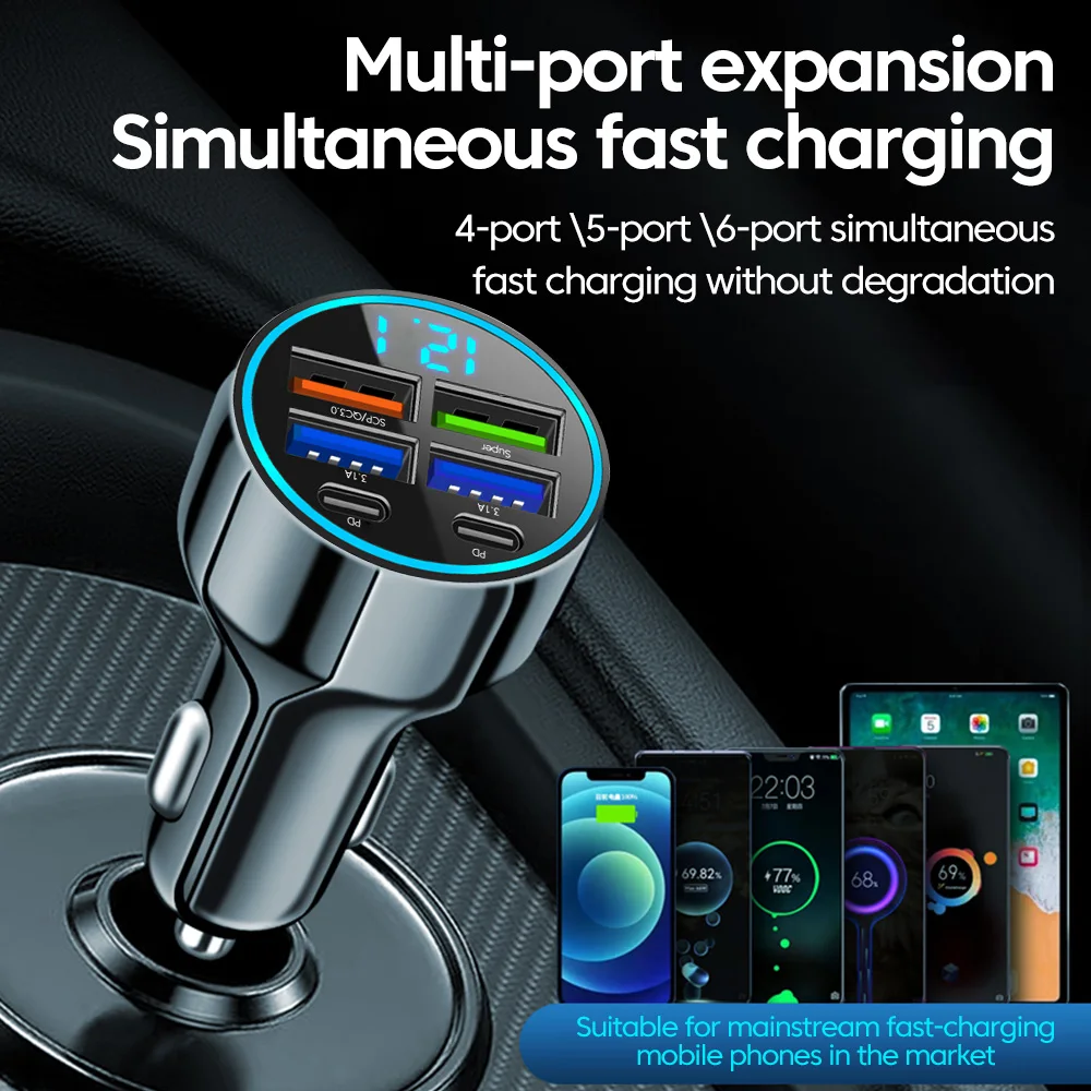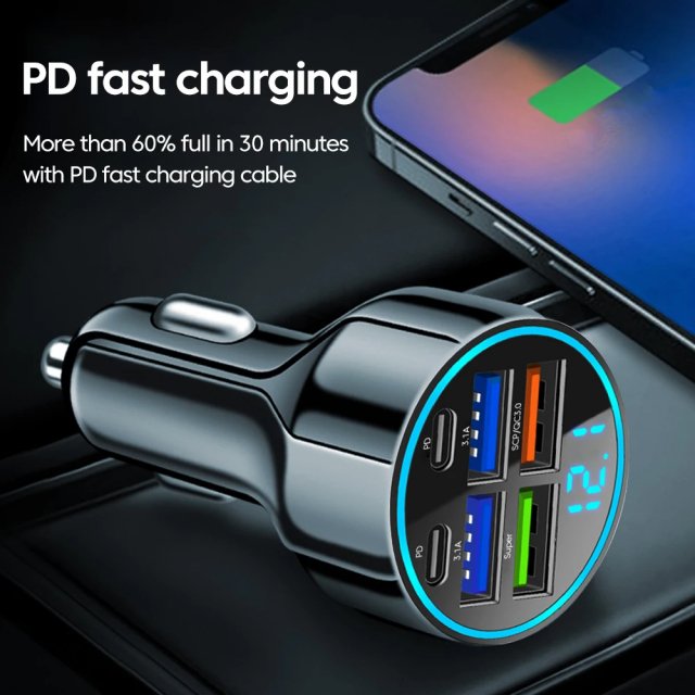 Equipped with intelligent power distribution, this charger automatically adjusts the output to provide the safest and most efficient charging for each connected device. The built-in LED display screen allows you to monitor real-time voltage and charging status, giving you peace of mind on every journey. With high-speed charging capabilities, you can power up your devices in record time without worrying about overheating or overcharging.