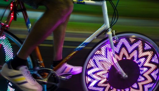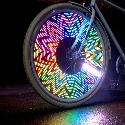 I'm using it on my electric bicycle I was very colorful it's fun it makes me impossible not to see what I'm writing I just wish I could adjust where it stays on my spokes other than that it's great