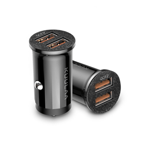 Never be with a dying phone or tablet when you equip your car with this handy Black Quick-Charge Dual-USB Charger Port.