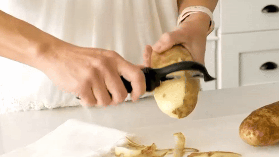 This peeler makes peeling potatoes feel like running a warm knife through butter! It's worth every penny and wasn't expensive. I recommend buying one for everyone you know!