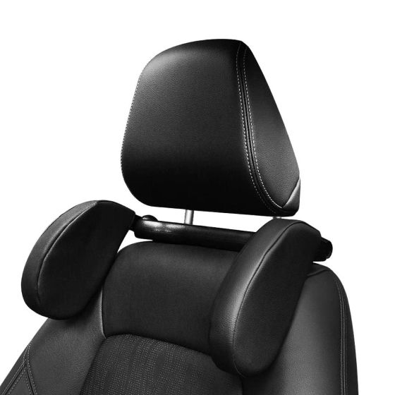 This thing is great!! I finally pulled the trigger and bought one for my 6 yr old and 10 yr old to use on a car trip we're taking this weekend. I have a Ford Explorer, 3 kids in the second row, 1 cart seat. My 6 yr old and 10 yr old are going to use this between them and then the carseat is on the other side to use as a headrest. They also have those neck pillows, but they don't like to use them for some reason. I'm so glad I finally got this. It looks really nice, very easy to move into any position and fits snug and tight on the headrest. My husband tried it out last night and approves as well.