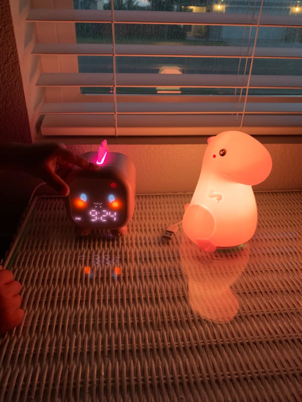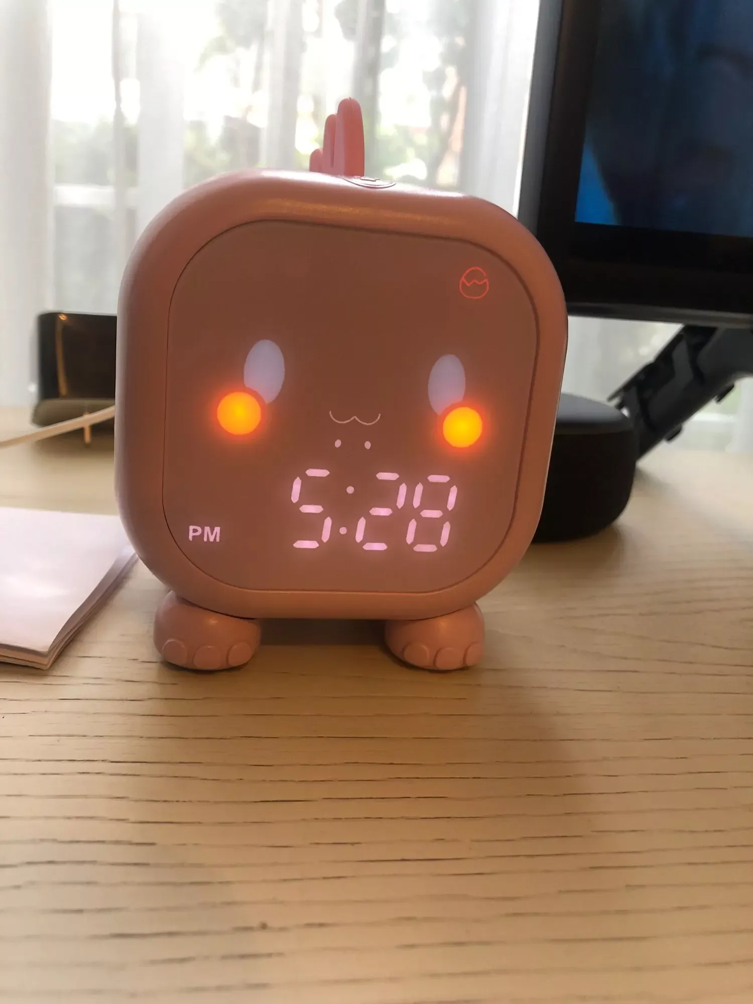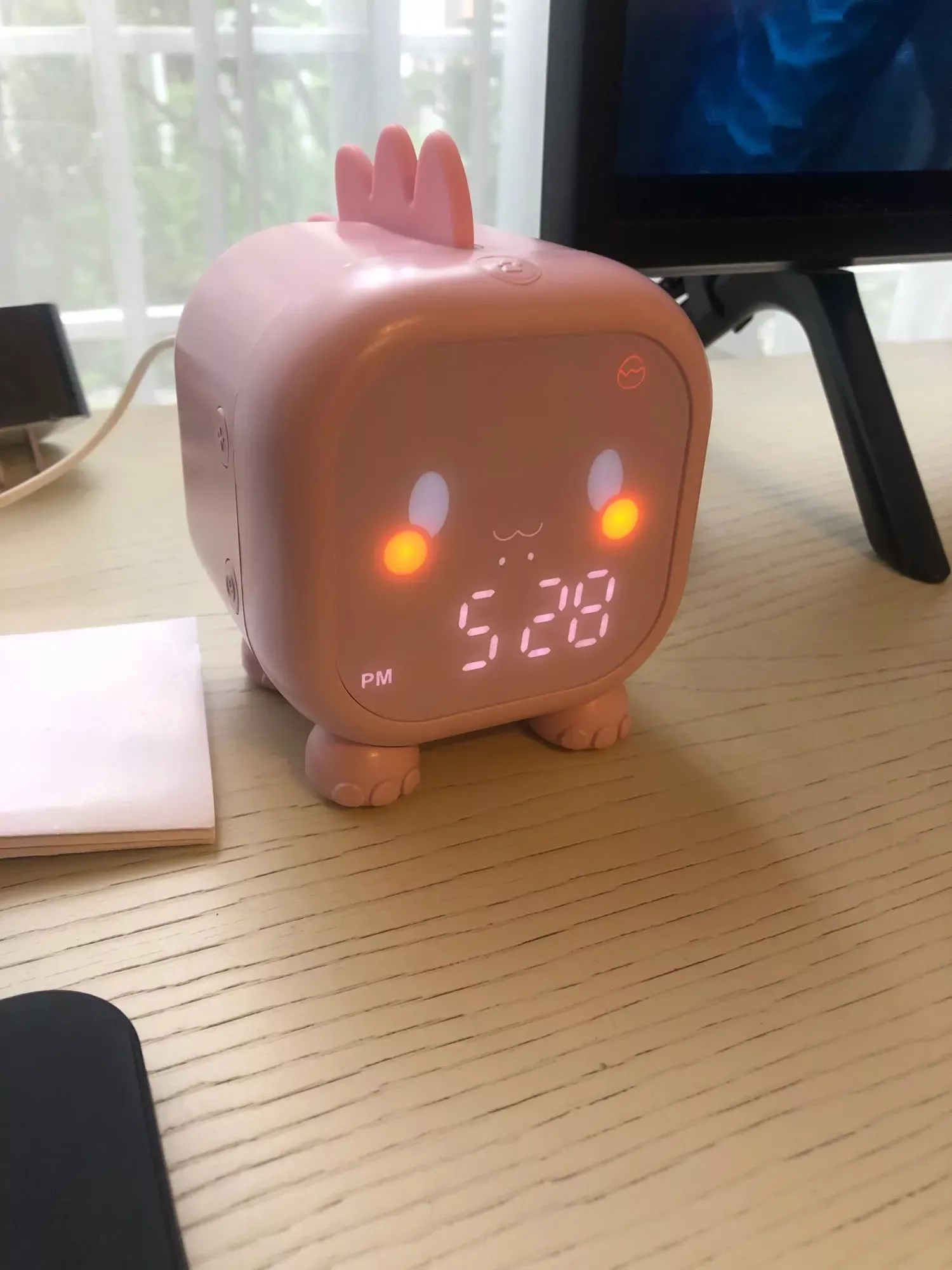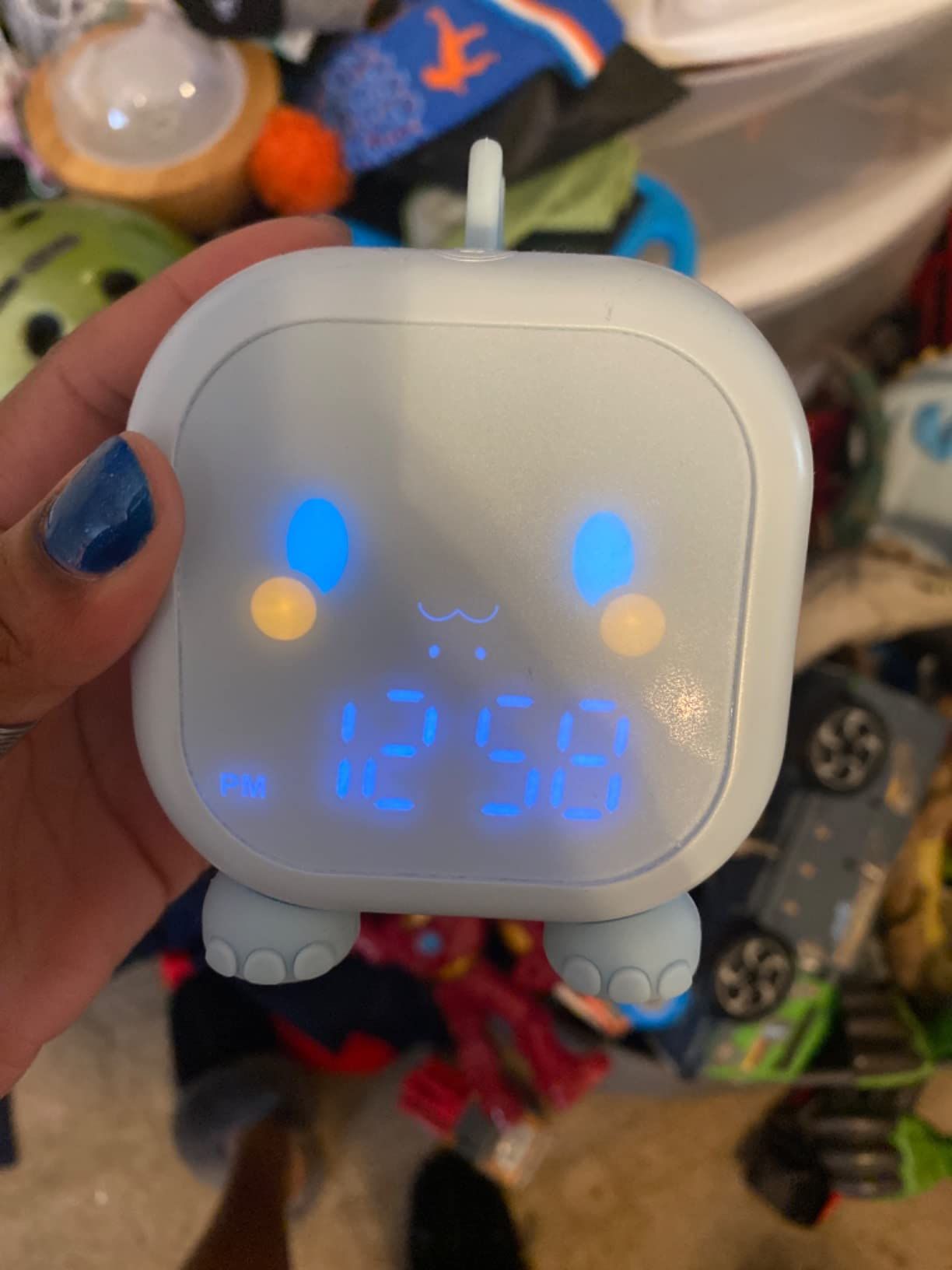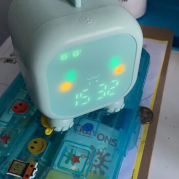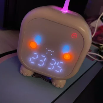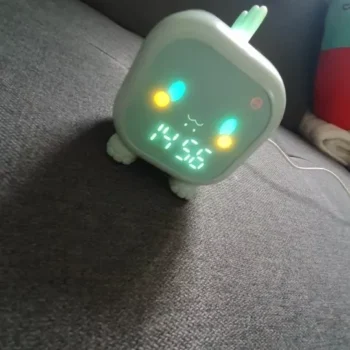 This dinosaur clock is adorable. My kids love it. Easy to set up, lights up in different colors, making a perfect night light. No issues after months of use. Highly recommend!