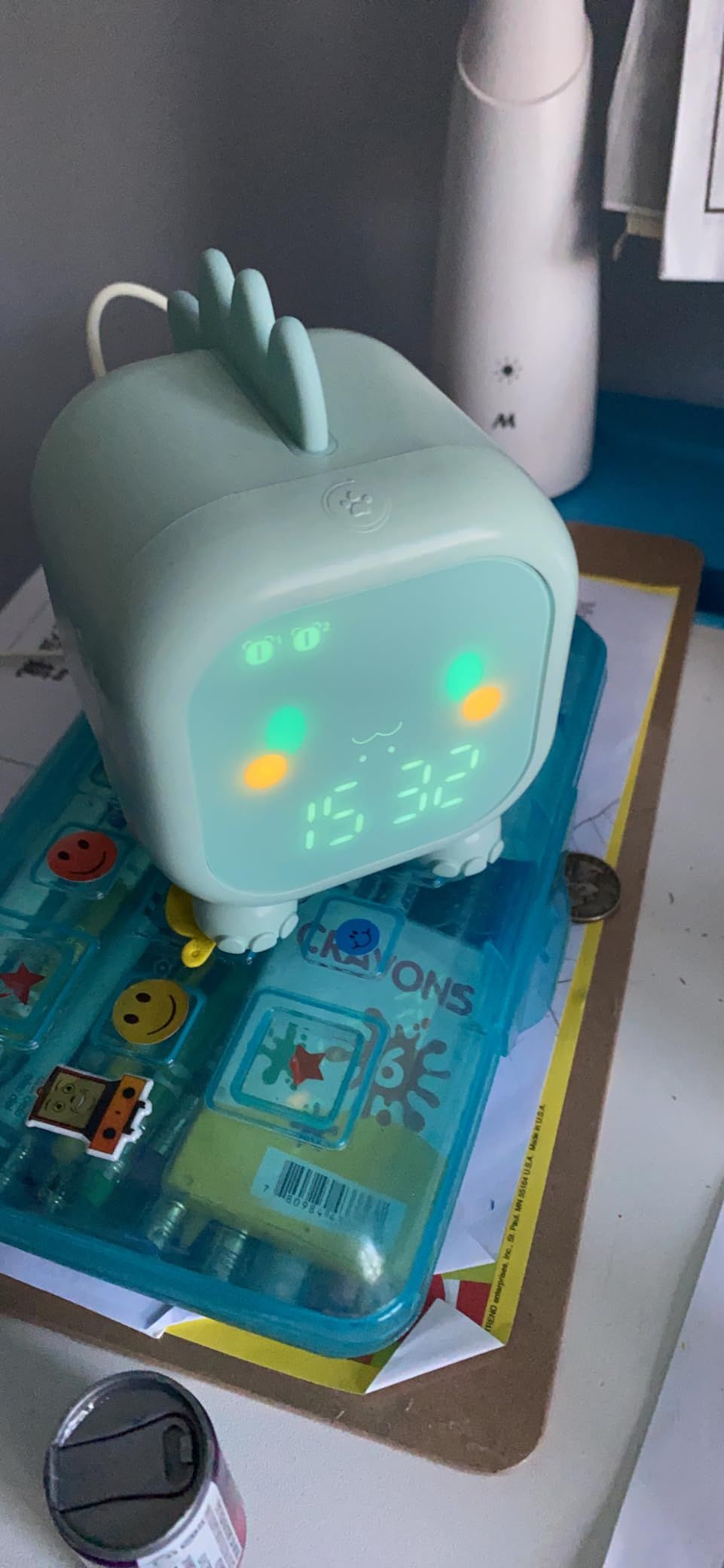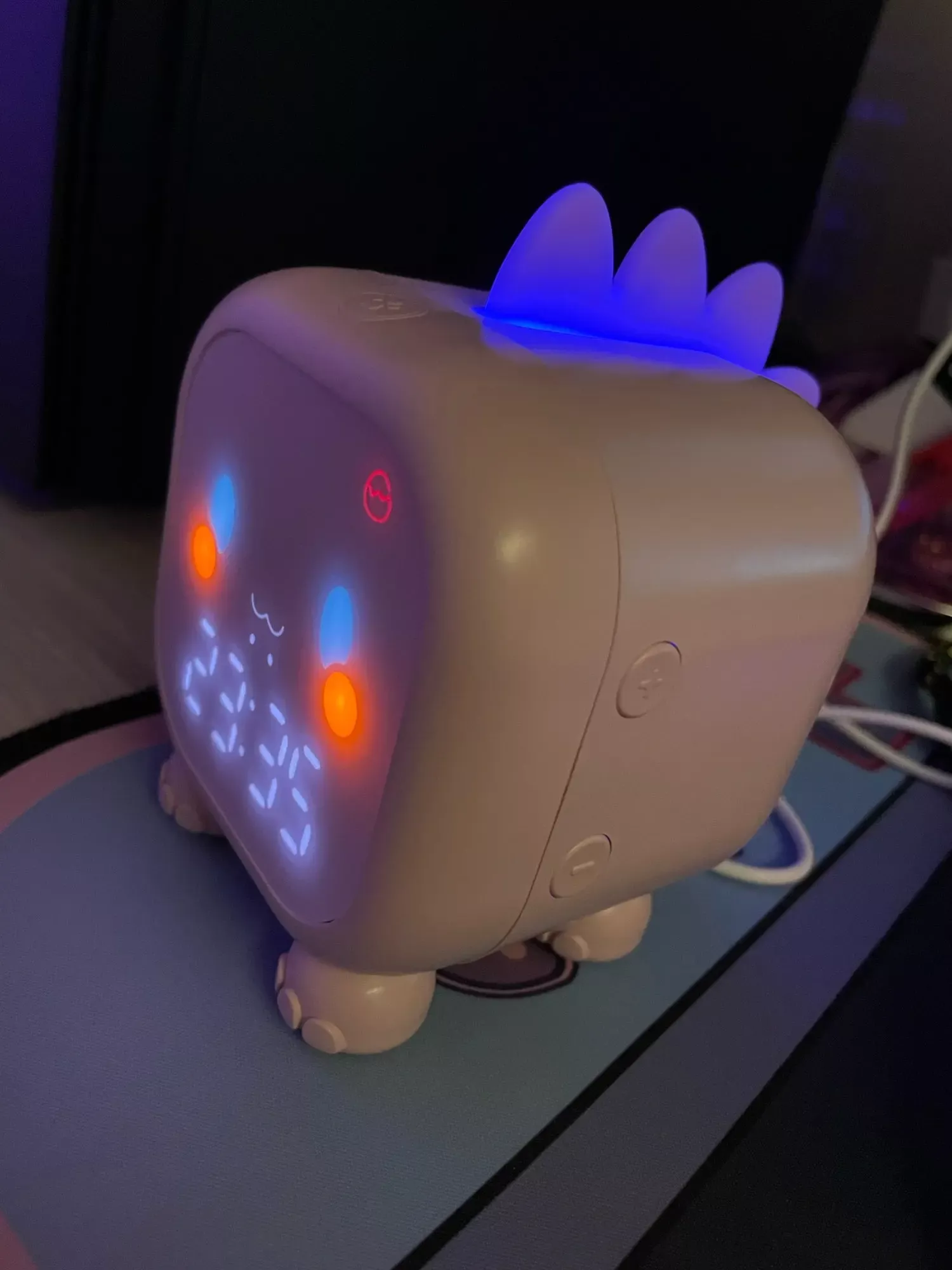 This clock is adorable. Tap the tail scales, and it lights up. Kid-friendly and small, perfect for a child's room!
