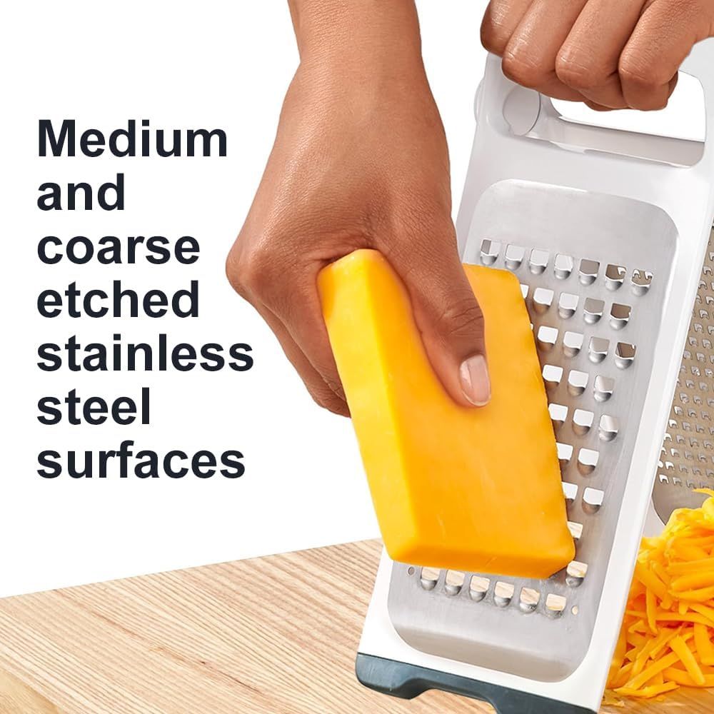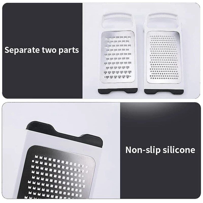 Our product stands out with its unique detachable and foldable design, allowing for easy storage and cleaning. Unlike traditional graters, this 2-in-1 tool saves valuable kitchen space and reduces clutter. Crafted with high-quality stainless steel, it ensures durability and longevity, making it an essential for every kitchen.