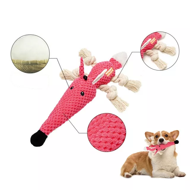Crafted from soft yet durable fleece and cotton rope, this chew toy is gentle on your pup’s teeth while still being tough enough to withstand enthusiastic biting and tugging. With its unique long nose design and floppy limbs, it’s irresistibly fun to chew, toss, and carry around. At approximately 14.5 x 6.7 inches, it’s the ideal size for your pet to grip, gnaw, and cuddle.