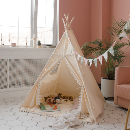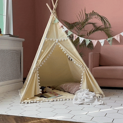 This teepee tent has been a wonderful addition to our home. The size is perfect for my child's imaginative play and fits comfortably in various areas of the house without taking up too much space., it's made from quality materials like solid pine and soft cotton, which means it's both durable and comfortable.