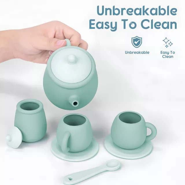 Crafted from high-quality, BPA-free silicone, this toy tea set is soft, safe, and easy to clean—making it ideal for even the most active little ones. The smooth edges and lightweight design ensure your child can pour, serve, and play with ease. Each piece is sized perfectly for children ages 3 and up, supporting fine motor skill development and coordination through every pretend pour.