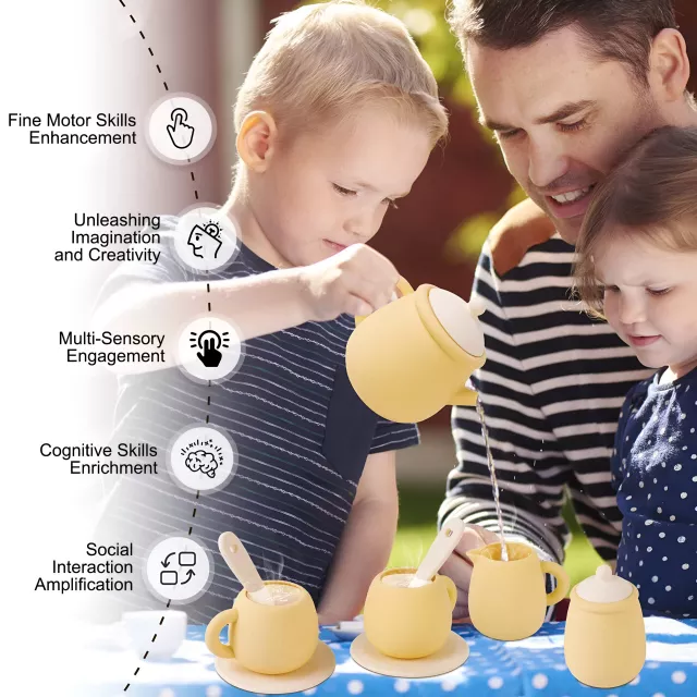 Bring creativity and learning to the playroom with this Children’s Silicone Afternoon Tea Set. Thoughtfully designed to spark imagination and support early developmental skills, this adorable kitchenware set transforms any space into a mini tea party. Made for tiny hands and big imaginations, it’s the perfect tool for encouraging pretend play, sensory exploration, and social interaction.