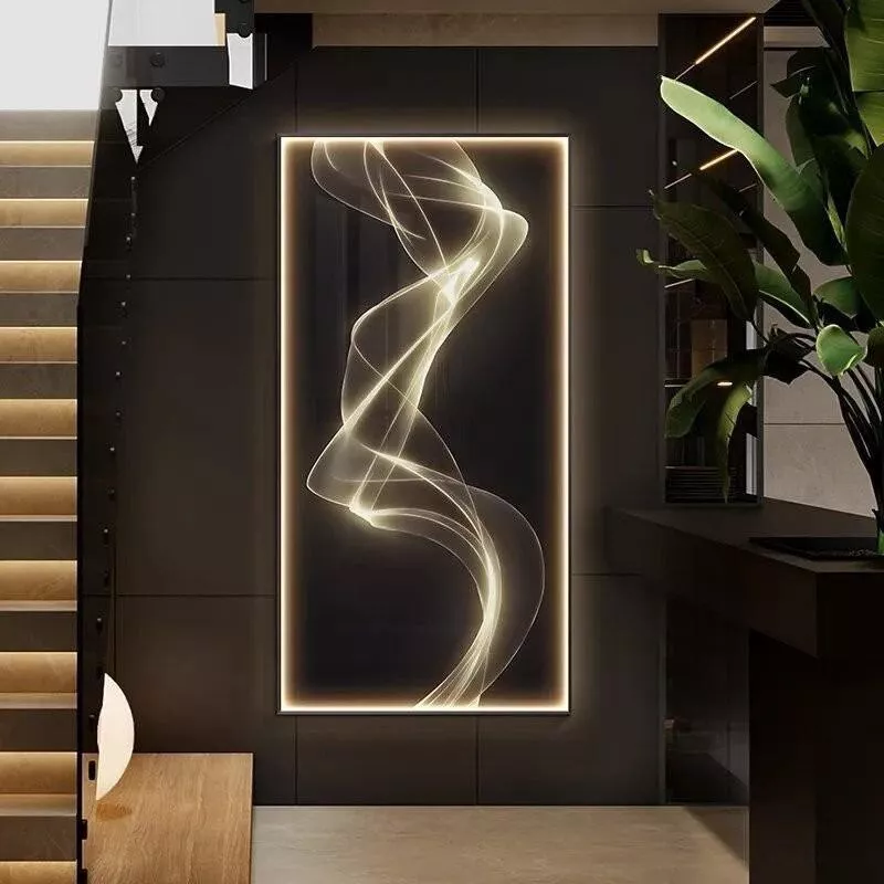Our wall lamp boasts a sleek aluminum alloy frame encompassing a high-definition spray painted canvas that brings images to life. The A-grade crystal mirror is scratch-resistant and ensures the utmost clarity, while the integrated LED light strip casts a warm, inviting glow. Equipped with a remote control for convenience, the dimmable feature allows you to set the perfect mood for any occasion. This meticulously crafted piece, complete with a DMF environmental protection backplane, seamlessly blends with your decor to create a harmonious look.