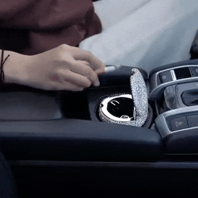 An ideal car accessory for small trash, complementing other blingy elements in the car.