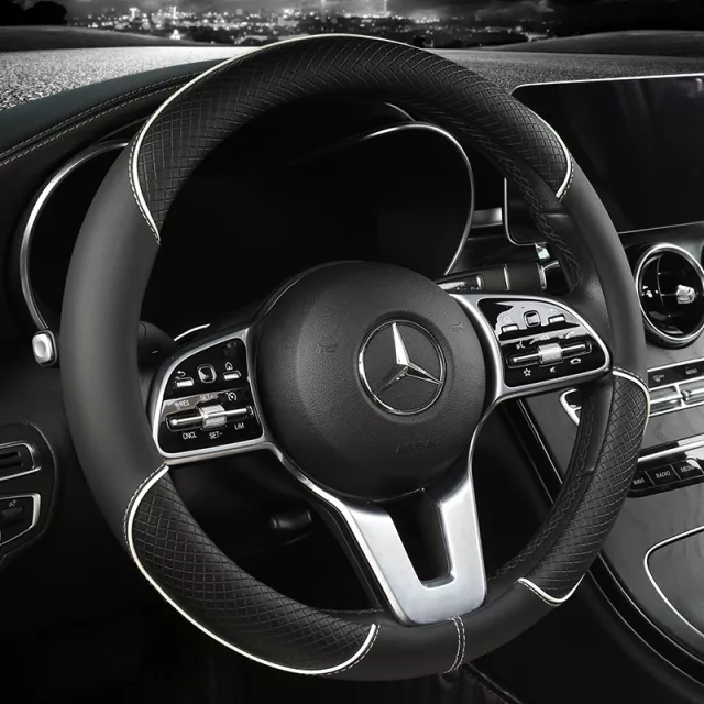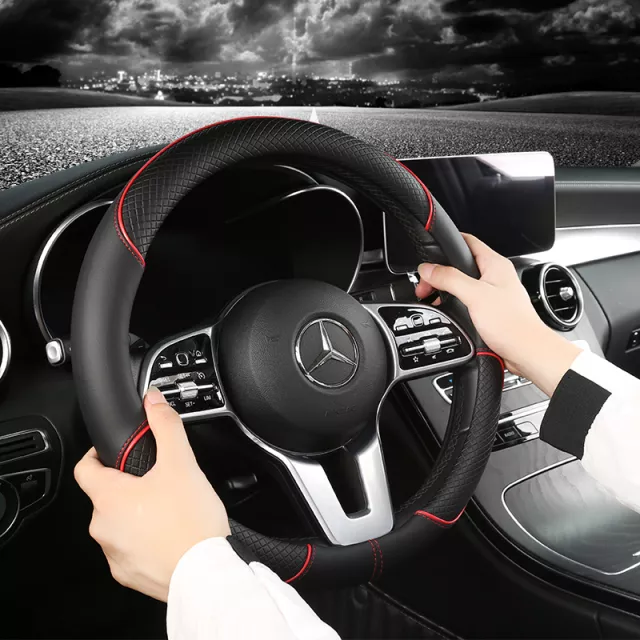 Transform your car’s interior with this luxurious leather steering wheel cover. Designed for both style and function, it features a sleek diamond pattern for an elegant touch, while the anti-slip veins ensure a firm grip for a safer, more comfortable drive. Built to fit standard 14.5-15 inch steering wheels, this cover is perfect for any season, keeping your hands cool in summer and warm in winter.