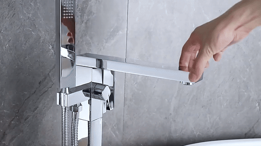 This faucet is just beautiful. Keep in mind you'll need some space around your tub for it to fit without issues. The floor connections need to be just right—not too high, not too low. It's a bit of a tight fit, but with a little patience, it looks and works great.
