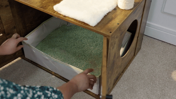 - Features a large, spacious cabinet that can double as a cozy sleeping area or house a litter box.