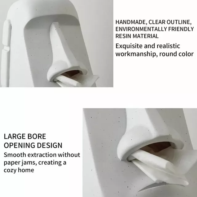 The Moai Tissue Box Holder is ideal for a wide range of settings. Use it in your living room to add personality to your space, place it on your desk for a touch of artistry while keeping tissues handy, or display it in your bedroom for a whimsical flair. Its abstract Moai head shape not only serves as a functional tissue holder but also serves as a striking sculpture that draws attention wherever it’s placed.