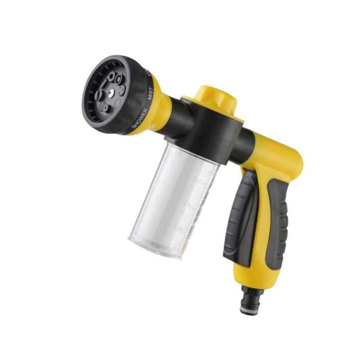 Find it hard to manually soap down your car or home windows for regular cleaning, then setting up the hose to wash everything? Our Multi-Purpose Hose Sprayer Nozzle cuts the work in half, with a built-in soap/cleanser chamber, all while offering three water-flow settings and eight different spray settings.