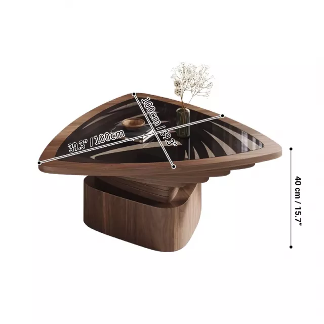 Crafted from solid wood multilayer board and finished with high-quality tempered glass, this table offers both durability and elegance. The triangular design provides balance and visual interest, while the stable wooden legs add warmth and contrast against the dark glass. With a height and surface area perfectly suited for compact spaces, it fits beautifully in small apartments or cozy living areas. Easy to assemble and designed for everyday use, it’s a functional piece that doesn’t compromise on style.