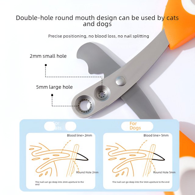 Keep your pet’s paws clean and healthy with the Orange Cat and Dog Nail Clippers. This high-quality grooming tool is designed to provide a precise and safe way to trim your pet’s nails. Whether you’re grooming a dog, cat, or puppy, the anti-slip handles ensure a secure grip, while the double circular cut holes offer clean and efficient cutting. Made with durable stainless steel, these clippers are built to last and are gentle on your pet’s sensitive paws. With an ergonomic design and comfortable grip, you can trim your pet’s nails with ease, ensuring a smooth grooming session every time.
