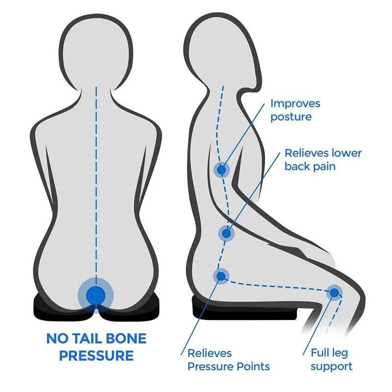- Reduces pressure on the lower back and coccyx.