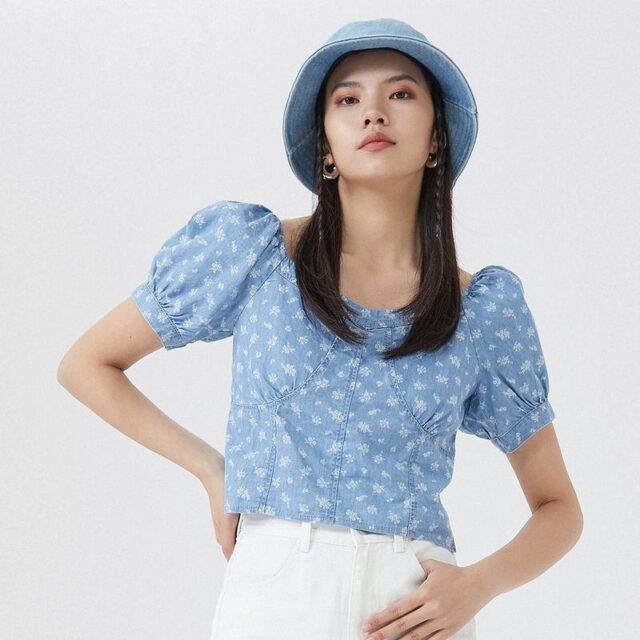- Chic vintage decorations including buttons, pockets, and fake zippers