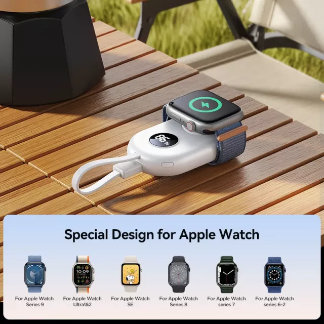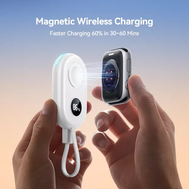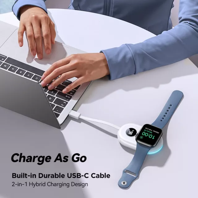 This wireless charger stands out due to its exceptional portability, ease of use, and reliable performance. The magnetic charging ensures that your Apple Watch stays securely in place during the charging process. With its built-in 2500mAh battery, you can enjoy up to 5 full charges without needing a wall outlet. The sleek, compact design makes it easy to carry in your bag or attach to your keychain. Additionally, with advanced features like LED battery display and multiple safety protections, this charger offers both convenience and peace of mind.