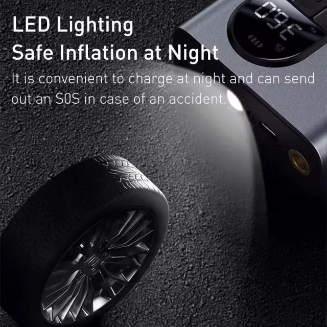 • Built-in LED Lighting: Equipped with a handy LED light, you can inflate your tires safely in low-light conditions or during nighttime emergencies.
