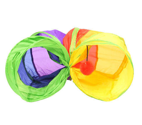 A tight and long tunnel is a perfect toy for a cat. It fulfills their natural urge to chase, hunt, and prey. You can even put a ball in the tunnel to make the games even funnier!