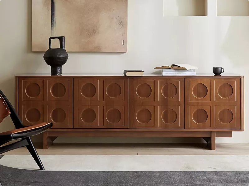 After searching for the perfect centerpiece for my entertainment area, I found this retro-inspired wooden console that instantly caught my eye. Its design pays a subtle nod to classic mid-century modern furniture, characterized by clean lines, functional form, and natural wood textures. This piece has not only met but exceeded my expectations in both style and utility. The quality of the wood is top-notch, giving it a sturdy and premium feel that I know will withstand the test of time. The design smartly accommodates modern technology, with enough space for a large screen, sound system, and other media devices. The mix of open and closed storage is ideal for displaying decorative pieces while hiding away cables and remotes, ensuring a neat and stylish setup. The attention to detail in the design, from the smooth-running drawers to the perfectly aligned doors, speaks volumes about the craftsmanship. Assembling the stand was a breeze, with all parts fitting together seamlessly and instructions that were easy to follow. It’s not just a functional item but a beautiful addition to my home that complements my decor and brings a sense of warmth and nostalgia. The stand’s dimensions are perfect, providing a spacious surface for my television without overpowering the room. Its practical design, combined with the charm of retro aesthetics, makes it a standout piece that has garnered many compliments from visitors. Overall, this wooden console is a fantastic find, offering both the look of timeless furniture and the functionality needed for today’s entertainment needs