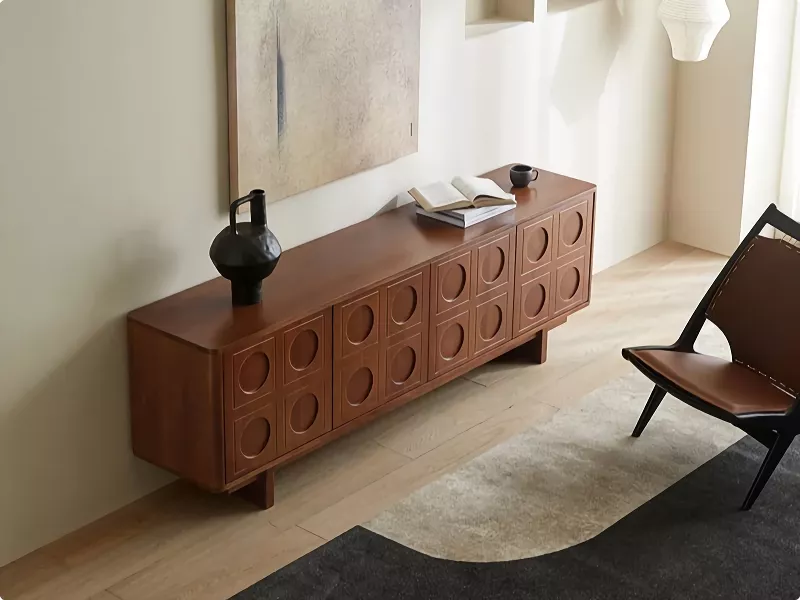This elegantly designed television console, reminiscent of classic Nordic furniture, has been a delightful addition to my home. Its understated design, featuring clean lines and a warm wood finish, captures the essence of Scandinavian minimalism and retro charm. The quality of the material is immediately apparent, lending both durability and a touch of sophistication to my living space. What impresses me most is the thoughtful design that marries form and function; it accommodates all my media components without compromising on style. The storage options are ample and versatile, with spaces for displaying books and art, alongside hidden areas for less aesthetic but necessary items like cables and controllers. The console's proportions are just right, offering a substantial surface for my television while maintaining a light and airy feel that doesn’t overwhelm the room. Its construction is solid, giving me confidence in its longevity and resilience. The assembly was manageable and rewarding, with each piece fitting perfectly and contributing to a sense of accomplishment once completed. Beyond its practicality, the console has become a focal point in my room, drawing attention with its elegant lines and authentic design. It's a product that reflects a keen attention to detail and an understanding of the aesthetic and functional needs of contemporary living. This console is more than just a TV stand; it's a piece of art that enhances the overall ambiance of my living space, providing a perfect balance between modern functionality and nostalgic design