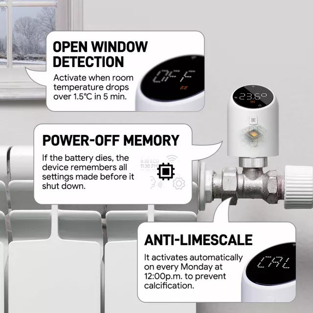 Perfect for busy households, this smart radiator valve keeps your home warm when you need it and helps you save energy when you don’t. Its advanced features make it stand out from traditional thermostats, ensuring both comfort and cost efficiency.