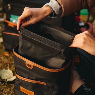 Crafted from 600D Oxford fabric and eco-leather, this trash can is sturdy and wear-resistant. The lid closes tightly with a magnetic button, while the trash hole is made of soft silicone, safe for children.