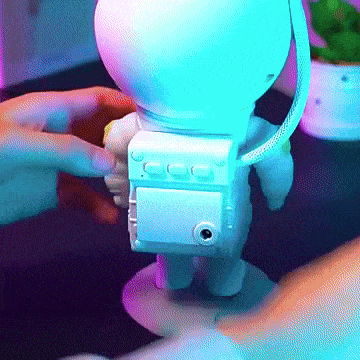 What sets our night light apart is its adorable astronaut design, paired with a stunning array of nebula effects. With 8 different nebula settings to choose from, and the ability to adjust brightness and speed, you can customize the lighting to suit your mood or create the perfect atmosphere for any occasion. The astronaut’s head rotates 360 degrees, allowing for multi-angle lighting and easy adaptation to any space. Whether standing or sitting, this astronaut is ready to illuminate your world.