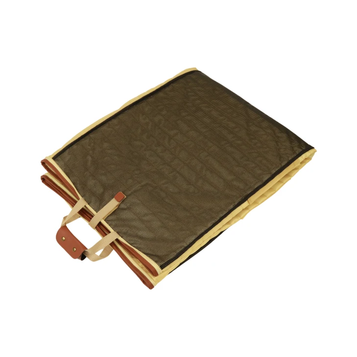 Featuring our branded beige and brown colors, this car hammock includes leather accents and a sleek geometric pattern. It integrates seamlessly into any car interior, offering protection with a stylish touch.