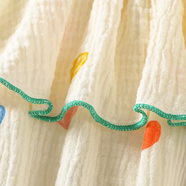 The bodysuit features delicate ruffled straps and a square neckline, giving it a sweet and feminine flair. Trimmed with soft green accents, it’s the perfect look for sunny days, family outings, or even first photos. The snap-button closure at the bottom ensures quick diaper changes, while the coordinating sun hat completes the look and provides essential sun protection during those summer strolls or playdates in the park.