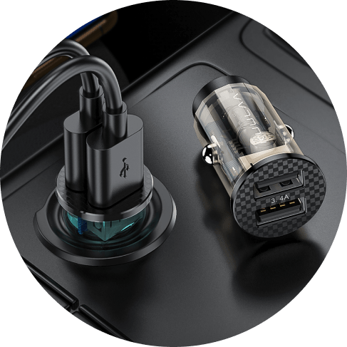 Never be with a dying phone or tablet when you equip your car with this handy Transparent 3.4A Dual-USB Charger Port.