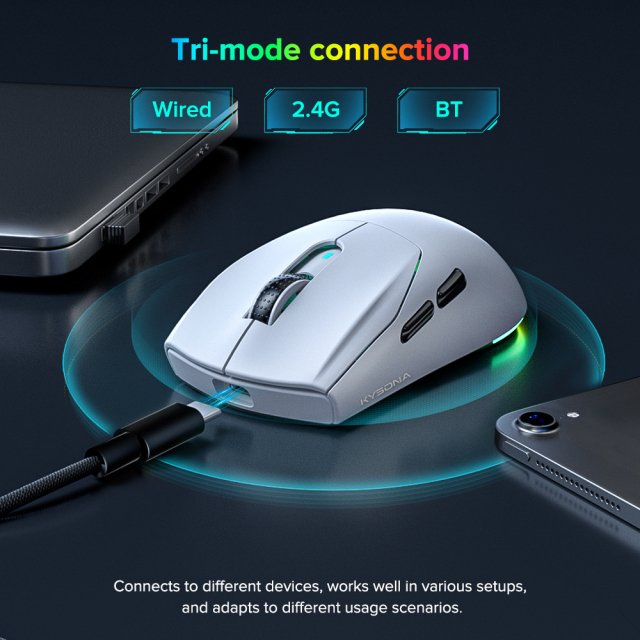 Whether you’re playing in the comfort of your home or setting up at a gaming tournament, the mouse’s tri-mode connection gives you the flexibility to connect to your laptop, PC, or any other device seamlessly. The mouse also includes a macro programming feature, allowing you to assign custom commands for faster and more efficient gameplay.
