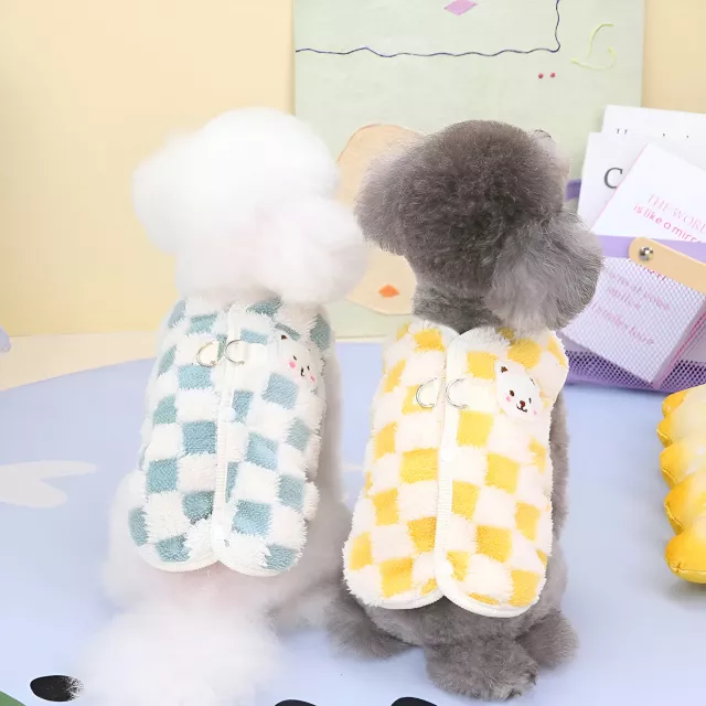 Wrap your furry friend in warmth and comfort with this chic Winter Plaid Puppy Vest. Perfect for small dog breeds like Bichon Frise, Poodles, and more, this cotton-padded vest ensures your pet stays cozy, stylish, and protected from the chill of autumn and winter. Designed for both comfort and practicality, it features a soft fleece lining, a cute plaid pattern, and a leash opening for added convenience on outdoor adventures.