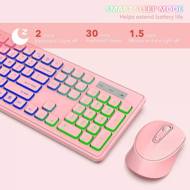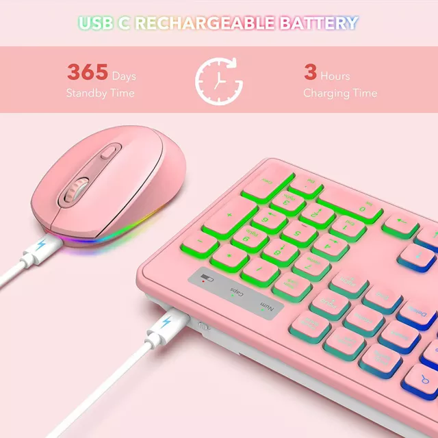 Whether you’re typing up reports, editing photos, or just browsing the web, this wireless combo has you covered. The novelty rainbow RGB lighting brings an eye-catching element, while the silent design lets you work without disturbing others. With a seamless plug-and-play USB receiver and long battery life, it’s made for users who value style, comfort, and efficiency in equal measure.
