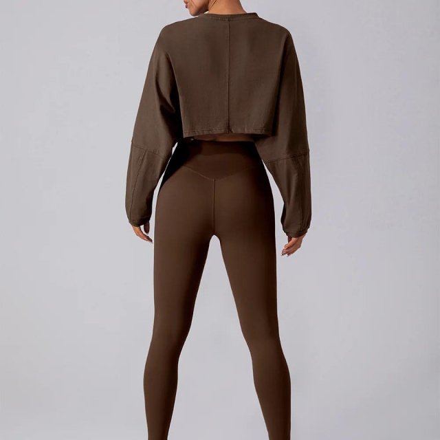 This long-sleeve crop top is not just a workout essential, but a fashion-forward piece that can easily transition from the gym to your daily activities. Its loose, relaxed fit ensures you stay comfortable no matter how active your day gets. The solid color pattern and simple yet elegant design allow you to pair it effortlessly with your favorite leggings or shorts for a chic, sporty look.